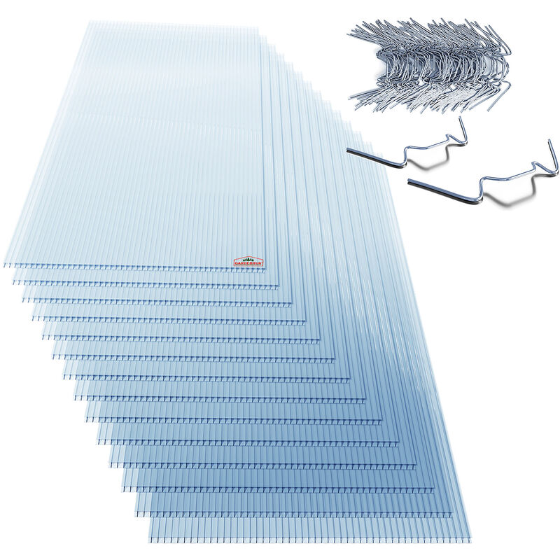 14x lastre alveolari policarbonato 50x clip acciaio inox 4mm 10,25 m² pannelli serra doppia parete 1210x605 - Gardebruk
