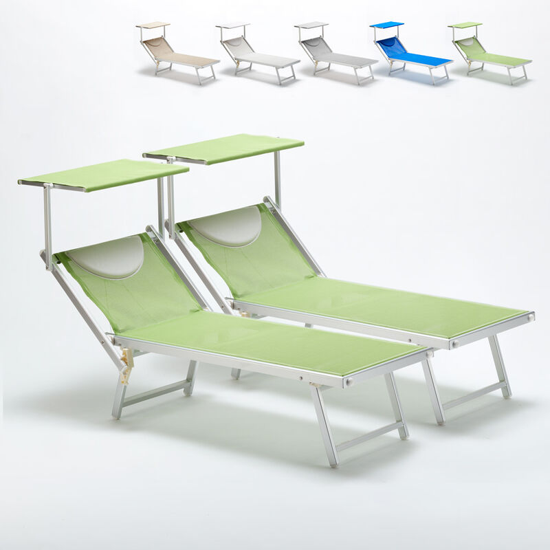 2 Lettini spiaggia mare prendisole professionali in alluminio Italia | Verde 2 - BEACH AND GARDEN DESIGN