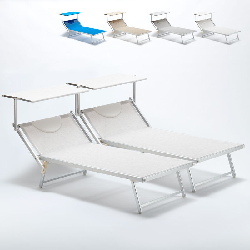 2 Lettini spiaggia mare professionali in alluminio Xl Grande Italia | Bianco - BEACH AND GARDEN DESIGN