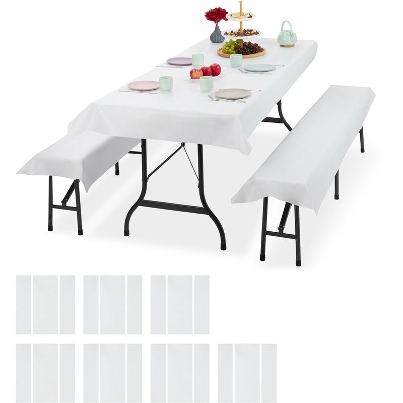 24x Set Tovaglie per Tavoli e Panche da Birreria, Misure LxP 100 x 250 cm, 2 Copri Panca, Lavabili, Bianco - RELAXDAYS