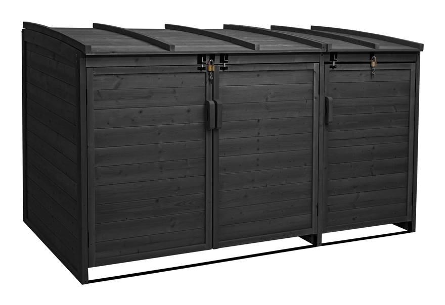 Set 3x copribidoni box rifiuti spazzatura modello HWC-H75 legno di abete versione 104x207x120cm colore ANTRACITE Probabilmente conoscete già il problema: i bidoni della spazzatura davanti casa sono una presenza costante, ma esiste una soluzione semplice ed efficace per renderli più apprezzabili! I modelli della nostra serie HWC-H75 sono espandibili, indipendentemente dal numero di bidoni della spazzatura che desideri coprire. Se si intende acquistare più copribidoni da affiancare, prestare attenzione alla misura della profondità delle varie versioni. Solo le versioni con la stessa profondità possono essere collegate tra loro mediante viti da posizionare sui lati appositamente preforati. Ogni compartimento è progettato per cassonetti per rifiuti standard con una capacità da 80 a 240 litri. Si raccomanda di misurare il bidone da coprire prima di scegliere la versione compatibile. Per rendere ancor più resistente il materiale è possibile trattare il legno, al fine di di rendere questi...Per saperne di più