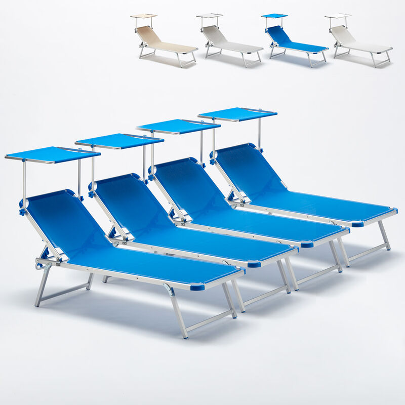 4 Lettini Prendisole in Alluminio da Spiaggia Mare con Tettuccio Regolabile Nettuno | Blu - BEACH AND GARDEN DESIGN