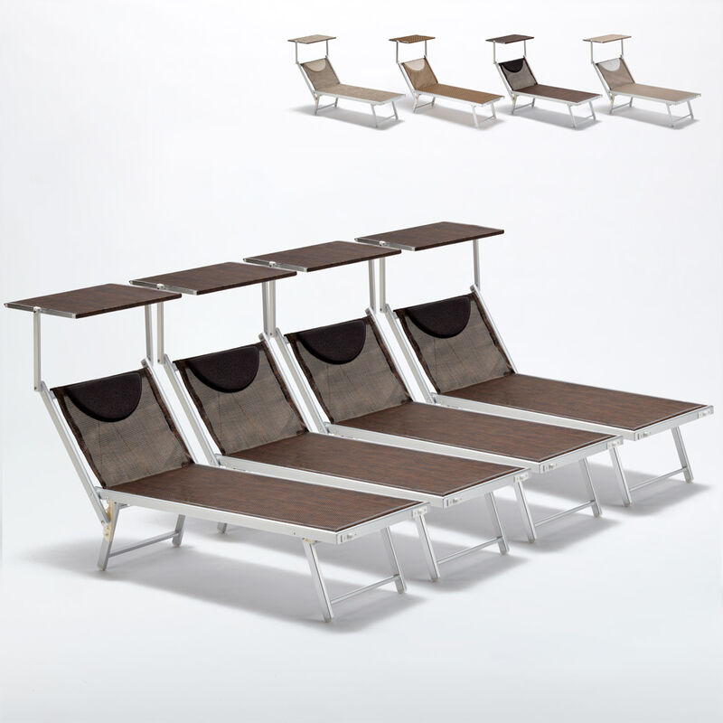 4 Lettini spiaggia mare prendisole in alluminio Santorini Limited Edition | Chocolate - Marrone Santorini - BEACH AND GARDEN DESIGN