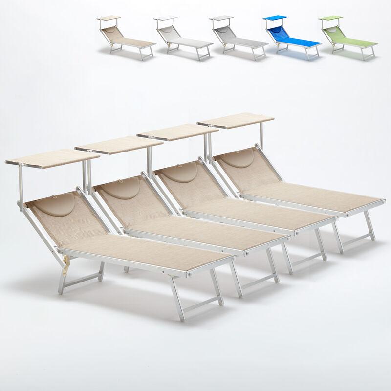 4 Lettini spiaggia mare professionali in alluminio Italia | Beige - BEACH AND GARDEN DESIGN
