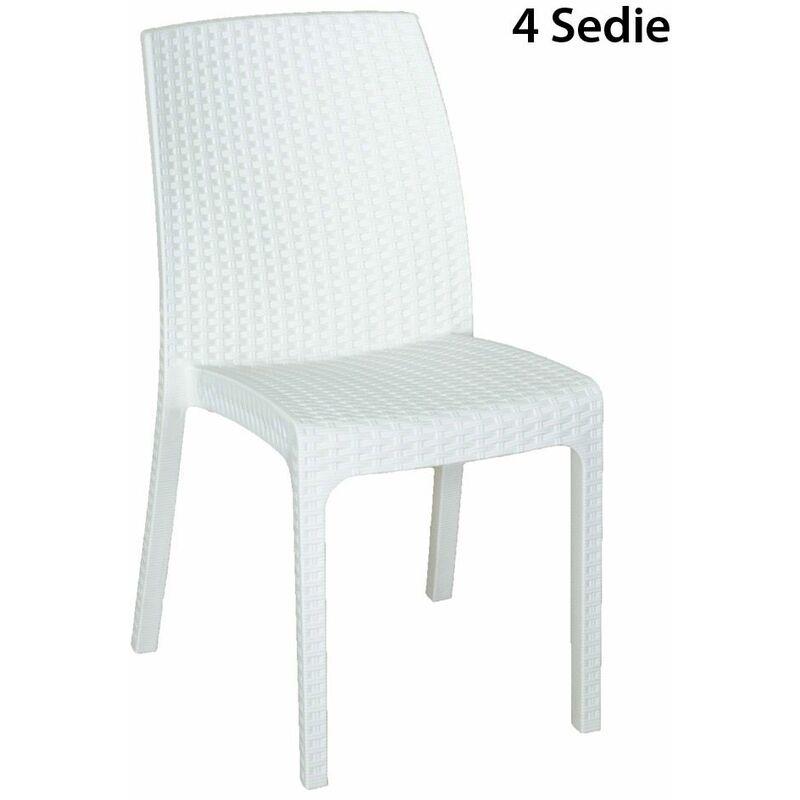 4 Sedie Poltrone Keter in Resina Bianche Balcone da Giardino Rattan Terrazzo - BRICOSHOP24