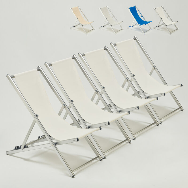 4 Sedie sdraio mare spiaggia e piscina alluminio Riccione | Bianco - BEACH AND GARDEN DESIGN