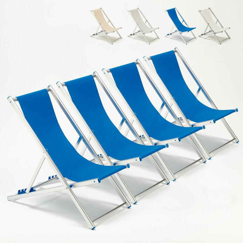 4 Sedie sdraio mare spiaggia e piscina alluminio Riccione | Blu - BEACH AND GARDEN DESIGN