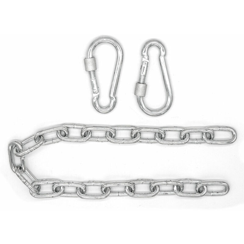 Catena per carichi pesanti fino a 230 kg con 2 moschettoni Dalle sedie appese ai sacchi da boxe - tutto si adatta Il nostro Power Set per sedie sospese, vele da sole e altalene: la robusta catena di prolunga assicura l'altezza perfetta - i moschettoni a vite per una tenuta sicura. - Lunghezza catena singola ca. 50 cm - collana con moschettoni ca. 66 cm Sempre la lunghezza giusta Appendino per camera dei bambini, soggiorno, balcone...È possibile regolare la prolunga della catena in modo totalmente flessibile - con uno spessore di 8 mm i moschettoni si inseriscono in ogni maglia della catena. 1 Catena per carichi pesanti in ferro zincato - Catena di ferro di 19 maglie - Caricabile fino a 230 kg - maglia della catena ca. 3,7 x 1,9 cm - Interno Ø ca. 1 cm - Spessore ca. 5 mm 2 moschettoni con tappo a vite - Lunghezza ca. 8 cm - larghezza ca. 3,7 cm - Interno Ø ca. 2,5 cm - Spessore ca. 8 mm All'interno e all'esterno: resistente alla corrosione e alle intemperie Tutte le parti sono...Per saperne di più