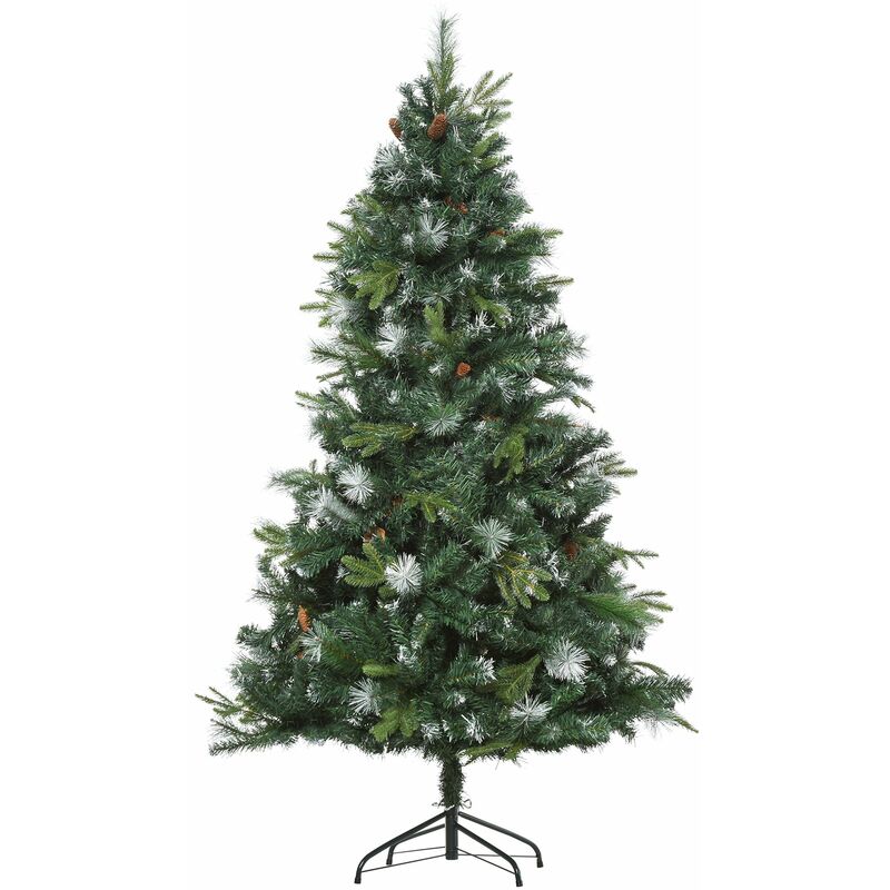 Albero di Natale Artificiale 180cm con 1077 Rami Leggermente Innevati e Pigne - Homcom
