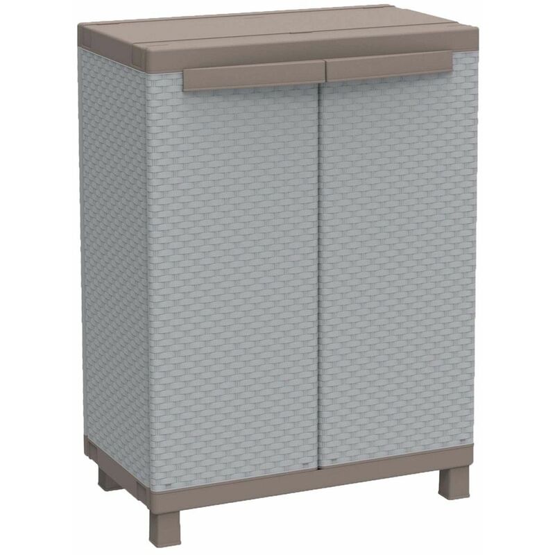 Armadietto basso per esterno doppia anta da balcone, terrazzo e giardino con 1 ripiano interno oltre il fondo del mobile per un totale di 2 ripiani, peso massimo consigliato 20 Kg per ripiano. Armadio in resina antiurto, estremamente durevole nel tempo che resiste ad urti e agenti atmosferici per ridurre al minimo la manutenzione. L'esterno dell'armadio è rifinito con trama intrecciata effetto rattan, molto elegante che si distingue dai classici armadi per esterno grazie alla sua bellezza estetica, funzionalità e qualità nelle materie utilizzate. Il mobile ha un'elevata tolleranza alle alte temperature, anche se lasciato sotto il sole i colori non rovinano. Facile da pulire, si consiglia di utilizzare un detergente neutro ed acqua, ed evitare l'uso di detergenti aggressivi, manutenzione semplice e veloce, può essere lavato tranquillamente, non assorbe odori e nè trattiene lumidità. Questo modello di armadio è ottimo per ogni tipo di arredo per esterno, è dotato di un semplice sistema...Per saperne di più