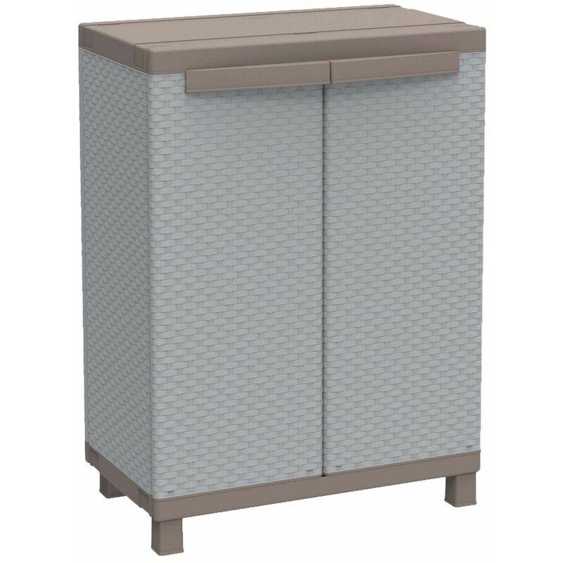 Armadio Basso Esterno in Resina con Ripiani Mobile Rattan da Balcone Giardino - BRICOSHOP24
