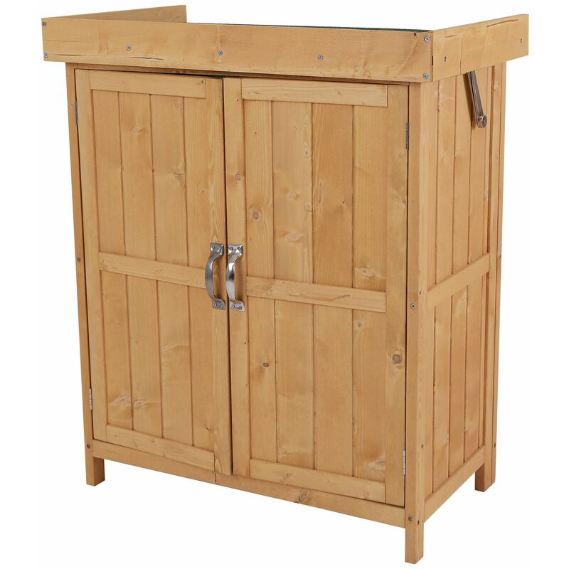 Armadio da Esterno Ripostiglio da Giardino a 2 Ripiani Porta Attrezzi in Legno 74 × 43 × 88cm - Outsunny