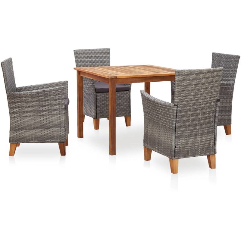Asupermall - Set Pranzo da Giardino 5 pz Polyrattan e Legno d'Acacia Grigio