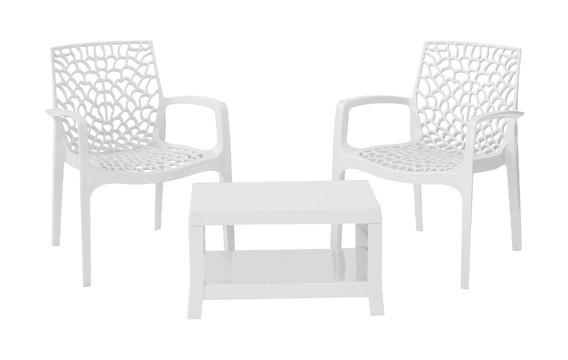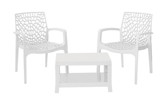 Balcony set air 2 poltroncine + 1 tavolino a un ripiano. Peso complessivo: 10,6Kg. Piano disponibile colore Bianco, Rosso, Grigio perla....Per saperne di più