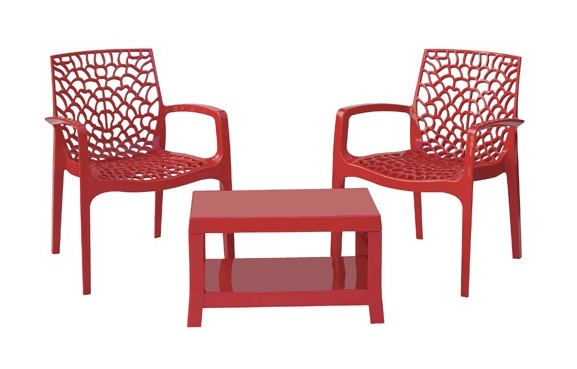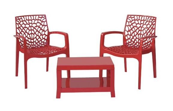 Balcony set air 2 poltroncine + 1 tavolino a un ripiano. Peso complessivo: 10,6Kg. Piano disponibile colore Bianco, Rosso, Grigio perla....Per saperne di più
