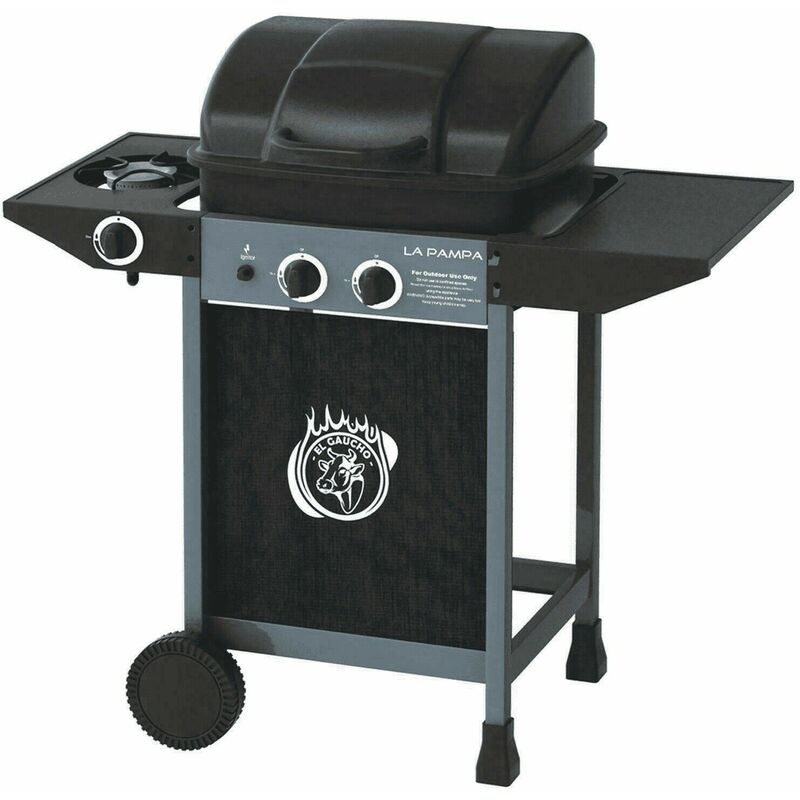 BARBECUE EL GAUCHO LA PAMPA + Barbecue a pietra lavica a gas, con fornello laterale. Caratteristiche Modello a gas a pietra lavica (1,5 Kg. pietra lavica in dotazione) Area di cottura 45x34 cm Griglia in acciaio Piani appoggio laterali 2 bruciatori accensione piezo 1 fornello laterale Coperchio per cottura a forno 2 ruote Dimensione: L97xP45xH99 cm...Per saperne di più
