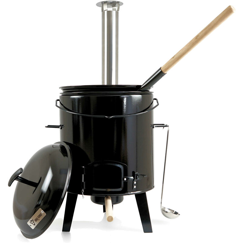 Bbq-toro - Cannone smaltato per gulasch con coperchio, incluso bollitore e padella per arrosto