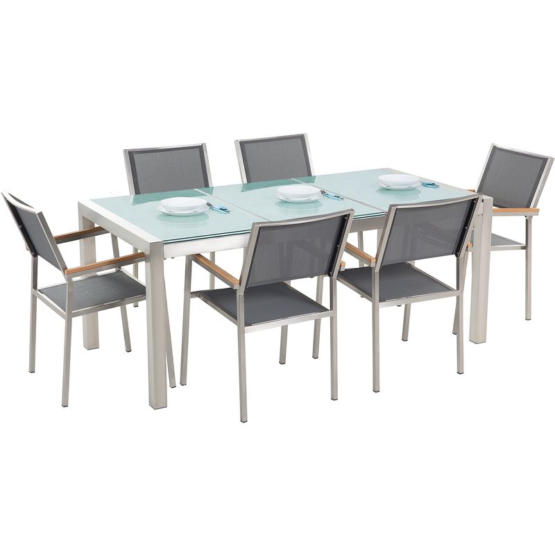 Beliani - Set da giardino 6 posti in vetro ghiacciato con sedie grigie GROSSETO