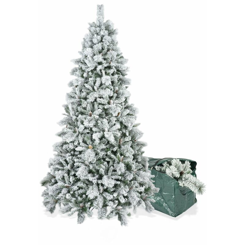 BOP - Albero di Natale Innevato con Pigne Dafne con Borsa Omaggio, Molto Folto E Realistico, Sistema Automatico di Apertura A Ombrello, Fogliame in