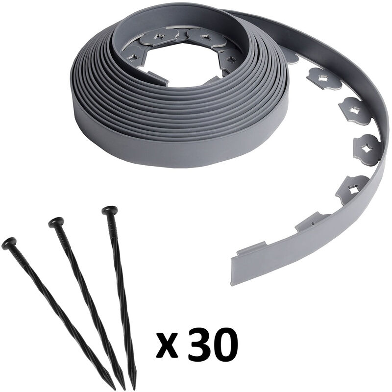Bordo da giardino flessibile grigio - 4 cm x 10 m con 30 picchetti di ancoraggio