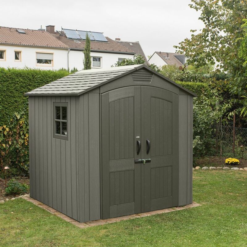 Le casette da giardino quadrata ingombro a terra 204x275 cm LIFETIME Venezia 2 completa di pavimento e tetto doppia spiovenza, colore grigio con venature effetto legno. Sinonimo di qualità e affidabilità, questi box rimessaggio realizzati in polietilene a doppia parete, alta densità e protetto con UV sono dotati di rinforzi in acciaio. Finitura spazzolata ruvida. Il capanno da esterno con tetto realizzato con capriata, è la soluzione ideale per lo stoccaggio degli attrezzi da giardino, biciclette e oggetti che possono finalmente liberare il garage. Questo container è dotato di un lucernario a tutta lunghezza che fornisce lilluminazione interna naturale. Pavimento compreso in polietilene ad alta densità antiscivolo (HDPE) ed anche la finestra con policarbonato apribile a metà sulla parete laterale. La pendenza del tetto di questo mobile per esterno consente un rapido drenaggio della pioggia e della neve, oltre ad una maggiore capacità di carico. Porta doppia anta rinforzata con...Per saperne di più