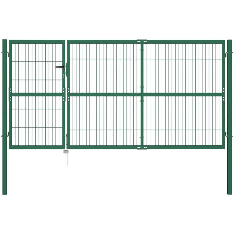 Cancello di Recinzione con Paletti 350x140 cm in Acciaio Verde - ASUPERMALL - L'avis des Clients