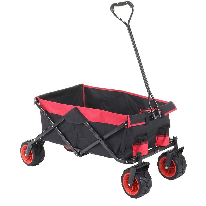 Carrello carriola pieghevole HWC-E62 ruote fuoristrada ~ senza tetto/tasca rosso - MENDLER