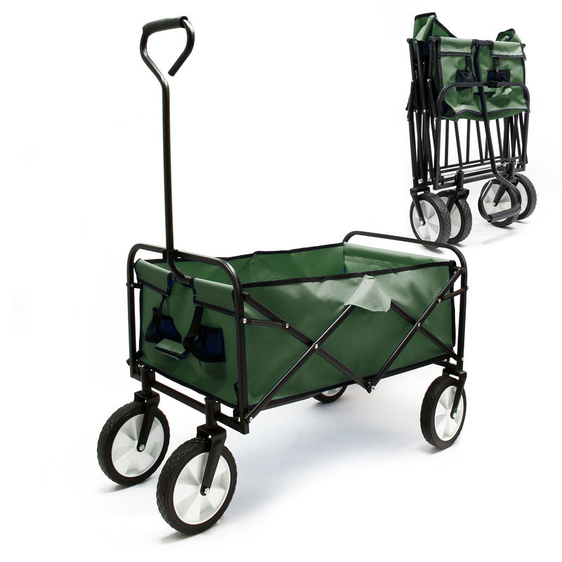 Carrello da trasporto pieghevole verde con ruote in plastica e maniglia anche per percorsi offroad - WILTEC