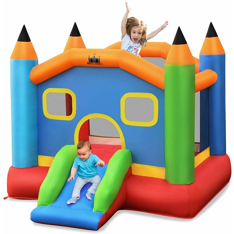 Casa Casetta Area Gioco Gonfiabile, Castello Gonfiabile con Scivolo per Bambini (Senza Compressore) - COSTWAY