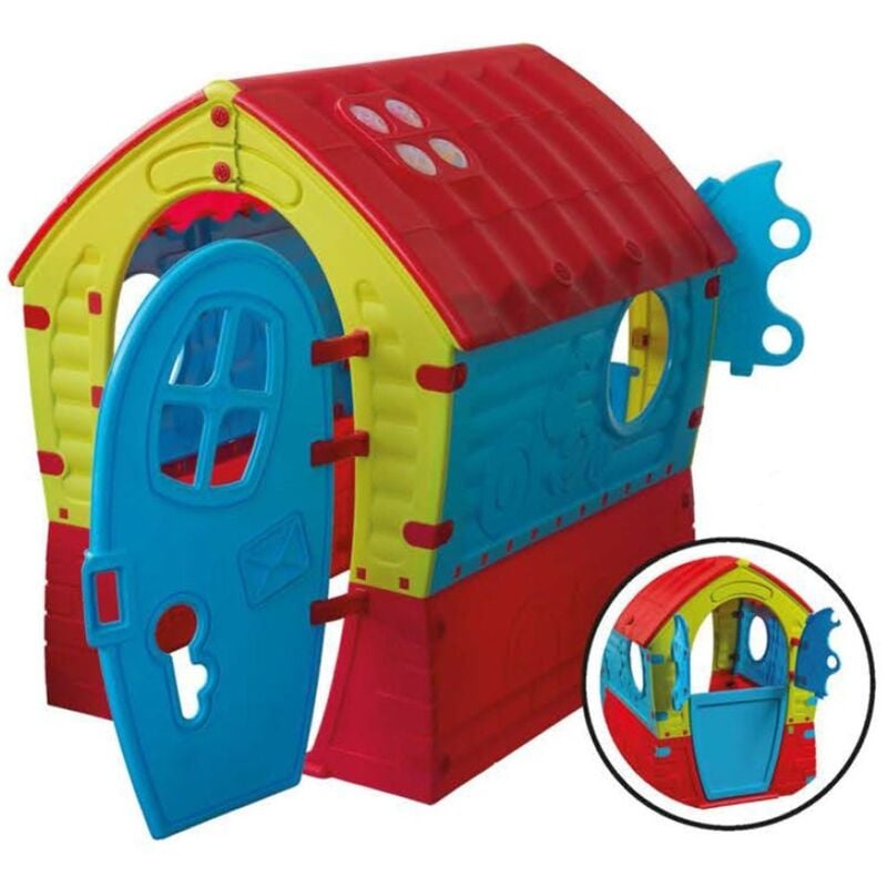 Casetta in plastica da giardino colorata per bambini multicolor Dream House dimensioni 95x90 cm realizzata in resina termoplastica con finestre e porta che si aprono a battente. Apertura ad oblo sulle pareti laterali per guardare fuori, i bambini impazziranno a giocarci dentro. Gioco per bimbi da esterno, si può mettere in qualsiasi giardino o terrazzo grazie alle sue misure salva spazio si adatta ad ogni tipo di arredo giardino. Prodotto trattato anti UV è resistente agli agenti atmosferici, non si rovina, conforme alle norme di sicurezza europee. Caratteristiche Tecniche: Materiale: resina termoplasticaDimensioni casetta (LxPxH): 95x90x110 cmDimensione confezione (LxPxH): 98x59x20 cm - Peso: 10 kg...Per saperne di più