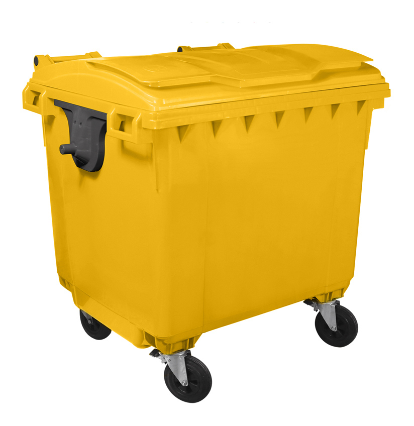 Cassonetto porta rifiuti con quattro ruote e coperchio piano 1100 litri - Giallo - Mobil Plastic