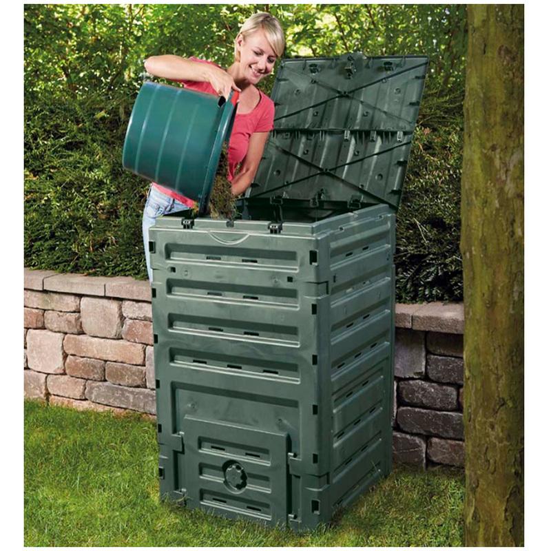 Compostiera da giardino NEW domestica Eco-Master litri 300 cm 60x60xh90 Questo composter è ideale per trasformare in concime organico prodotti vegetali come gli scarti di cucina, bucce di verdure e frutta, fondi di caffè e filtri di thè, avanzi di cibo e pane, i rifiuti del giardino, foglie morte, fiori appassiti, sfalci di prato e potatura. CARATTERISTICHE TECNICHE DEL PRODOTTO: in polipropilene restistente ai raggi U.V. e agli agenti atmosferici Completo di portina inferiore per estrarre il prodotto finito Coperchio rialzabile Assembraggio senza attrezzi Ampie aperture sia di carico che di scarico prodotto Per agevolare l'introduzione del prodotto vegetale Codice Ean: 8015358028899...Per saperne di più