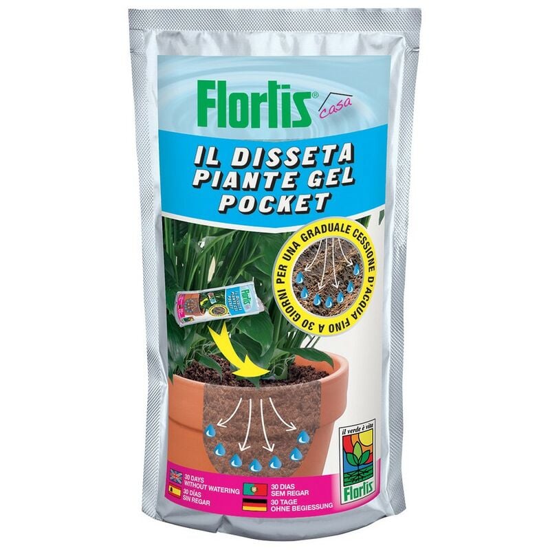 Il Disseta Piante Pocket è un gel costituito da acqua e fibre vegetali, in grado di cedere gradualmente il proprio contenuto di acqua, garantendone così una disponibilità fino a 30 giorni (ad una temperatura di 20 °C). Modalità d'uso: Innaffiare abbondantemente il terriccio prima dell’utilizzo del prodotto. Tagliare il sacchetto e appoggiarlo o interrarlo leggermente nel terriccio inumidito. Un sacchetto da 220 ml è sufficiente per vasi di 15 cm di diametro; per vasi di 25 cm di diametro utilizzare 2 flaconi contemporaneamente, e così via....Per saperne di più