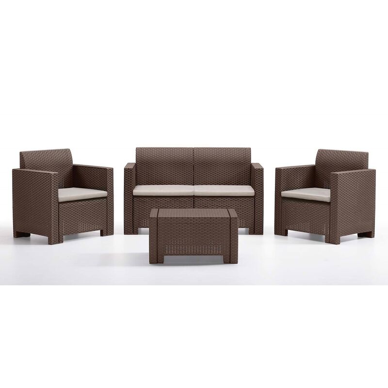 Divano due sedute con Poltrone e Tavolino/Salotto/Salottino per Esterno/Arredo Giardino - Mod. Kansas 2 Marrone/Brown