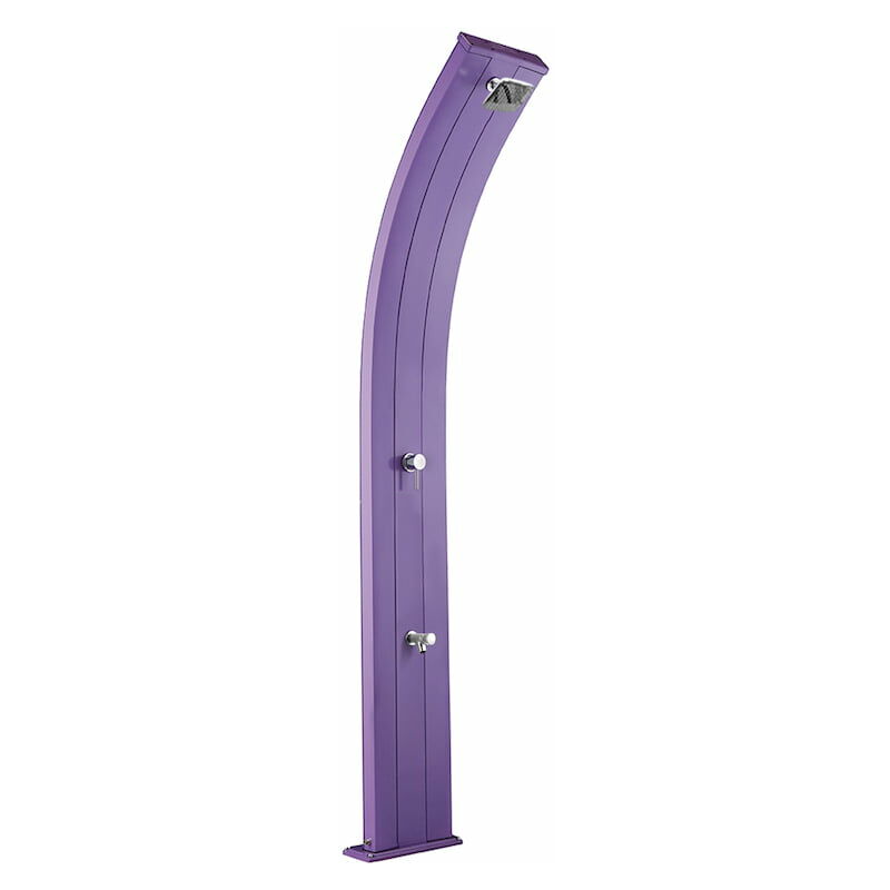 Doccia Solare Doccia a Riscaldamento Solare da Giardino Piscina 40L Con Miscelatore Caldo-Freddo e Lavapiedi 225x14x34cm Arkema Dada Viola Doccia Solare da esterno dal design innovativo e originale, Dada con lavapiedi della ARKEMA . L'armonia e l'eleganza delle sue forme la rendono un complemento d'arredo adatto per qualsiasi ambientazione, sia solo per il giardino o se necessitate di una doccia per la vostra piscina. Ideale per strutture pubbliche e balneari. Realizzata in alluminio con trattamento anti-corrosione, totalmente ecologica in quanto riscalda l'acqua con il calore del sole. Questo tipo di doccia esterna contiene un serbatoio di 40 litri. E' dotata di sistemi di fissaggio. Soffione con ampio getto d'acqua a temperatura desiderata con posizione regolabile . Lavapiedi comodo e pratico, soprattutto in presenza di bambini. Miscelatore per scegliere la temperatura dell'acqua desiderata, sia per una rinfrescante doccia fresca sia per un tiepido getto d'acqua corroborante oppure...Per saperne di più