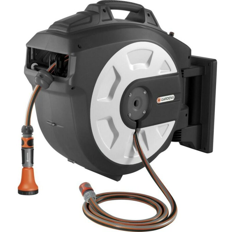 Scatola tubo da parete 30 roll-up automatica GardenA Comfort scatola tubo flessibile da parete 30 roll-up automatico - confortevole e di alta qualità - Tubo allungabile alla lunghezza desiderata - Attivare il potente alimentatore automatico del tubo semplicemente con una breve trazione sul tubo flessibile Il tubo rotola in modo sicuro e uniforme da solo - Swivel sulla parete di 180 gradi - Titolare pratico per la conservazione delle spazzole per lavaggi per docce GARDENA ecc. - L'arresto post-gocciolamento previene la perdita di acqua dopo l'uso Contenuto: 30 m GARDENA tubo di qualità 13 mm (1/2) 15 m di collegamento tubo di collegamento Parti del sistema originale GARDENA (1 x siringa di pulizia 1 x montaggio da parete incl. tappi a vite e ausilio di assemblaggio) Articoli promozionali! Solo fino a quando lo stock dura!...Per saperne di più