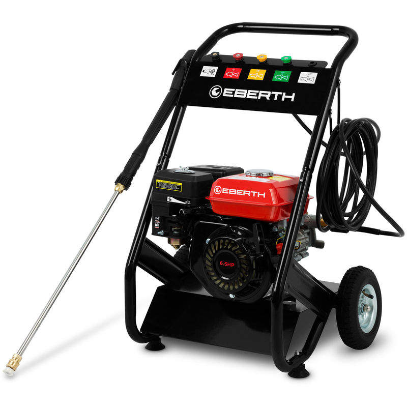 Eberth - 6,5 CV Idropulitrice con Motore a scoppio (210 bar, 4 Ugelli, 5m Tubo alta pressione, Pistola professionale, Motore a benzina 4 tempi,