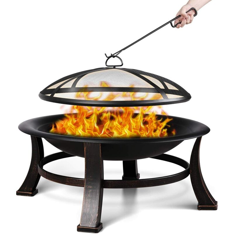 [DESIGN PRATICO] Design del telaio retrò, con camino rotondo con rivestimento nero resistente al calore, braciere in ferro (temperatura resistente al calore fino a 500 ° C, facile da usare con carbone, tronchi e legno), Il grande braciere (76 * 76 * 46 cm) può soddisfare i requisiti della festa del falò multipla e del barbecue party multi persona, offrendoti una classica esperienza di falò. [PROTEZIONE DI SICUREZZA] Questo braciere è dotato di una griglia per barbecue. Dotato di una pratica protezione antiscintilla, può circondare in sicurezza il fuoco e impedire che scintille e corpi estranei possano volare. C'è anche un poker, che può essere usato per rimuovere la rete di protezione quando è troppo caldo. Nero, resistente alle alte temperature, robusto e durevole, antiruggine. [DESIGN STABILE DELL'ANELLO DI SUPPORTO] La struttura del camino è composta da un anello di supporto compatto e resistente e da quattro gambe del tavolo, che rende il braciere molto stabile e resistente. La...Per saperne di più