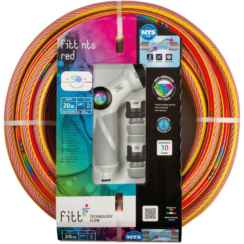 Fitt - nts Red 1/2 (12,5mm) tubo 20m per Irrigazione Giardino, Robusto e Malleabile per Uso Intensivo con Pistola Multigetto e Raccordi