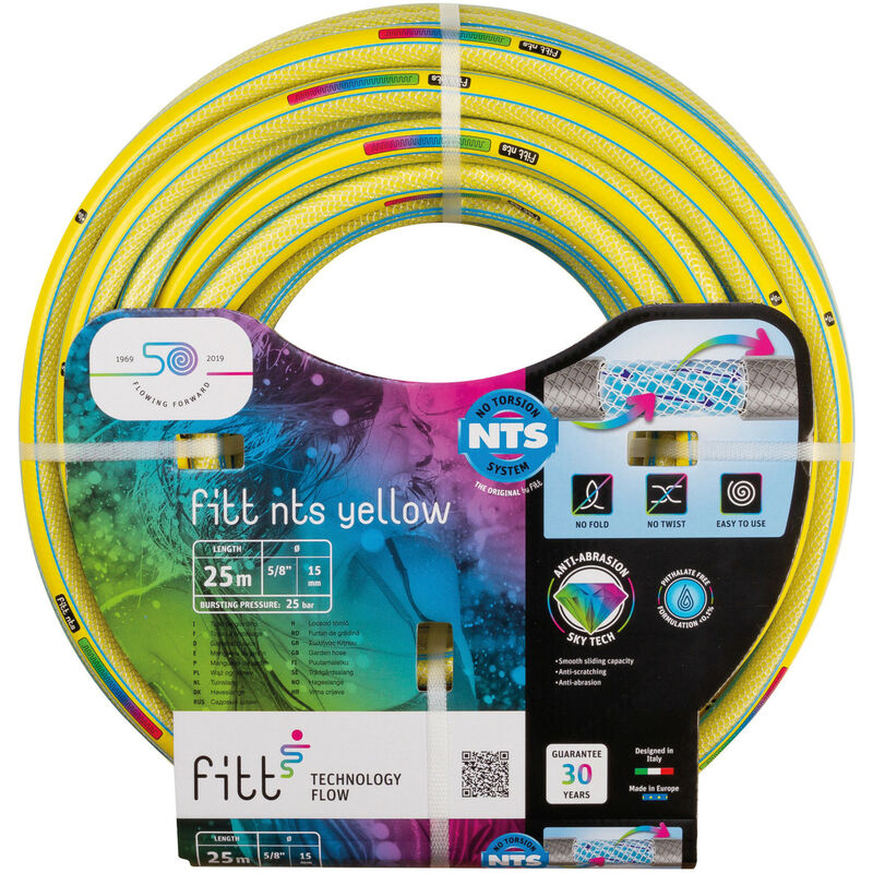 Fitt - nts yellow 5/8 (15 mm) 25m, Tubo per Irrigazione Giardino, Robusto e Malleabile per Uso Intensivo