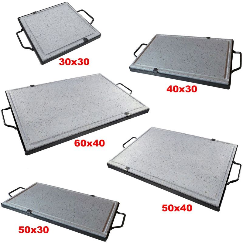 Fonderia Bongiovanni - Piastra con manici in pietra lavica con supporto bistecchiera in pietra naturale misure: cm 50x30 - L'avis des Clients