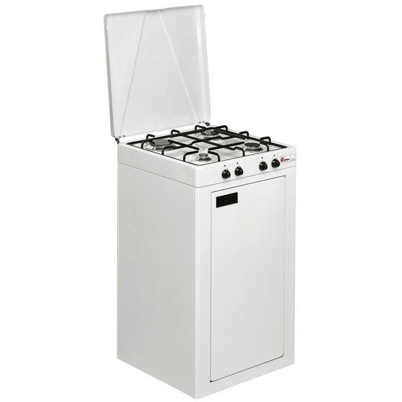 Mobilfornello a gas a 4 fuochi con valvola di sicurezza, bruciatori in lega Pyral N2, spartifiamma smaltati, griglia in acciaio smaltato, con vano portabombola. Dimensioni: cm 49 x 47,5 x 85,5 - Peso: kg. 18,1...Per saperne di più