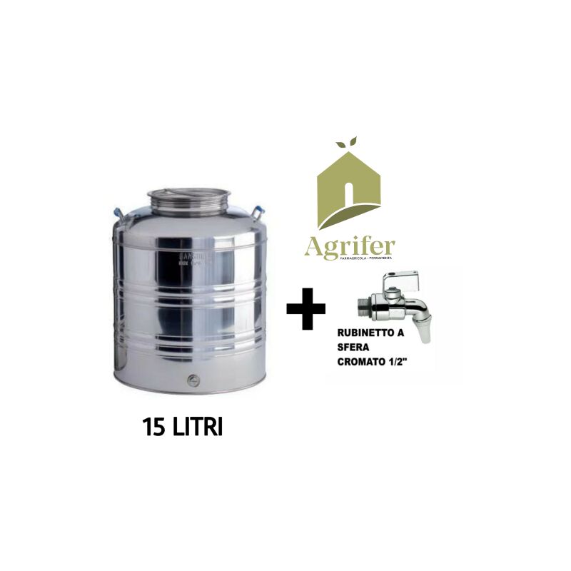 Fusto Olio Sansone Aggraffato Con Predisposizione 15 Lt Acciaio Inox + Rubinetto Cromato 15 Litri