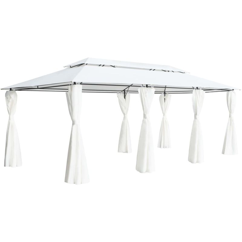 Gazebo con Tende 600x298x270 cm Bianco - ASUPERMALL - L'avis des Clients