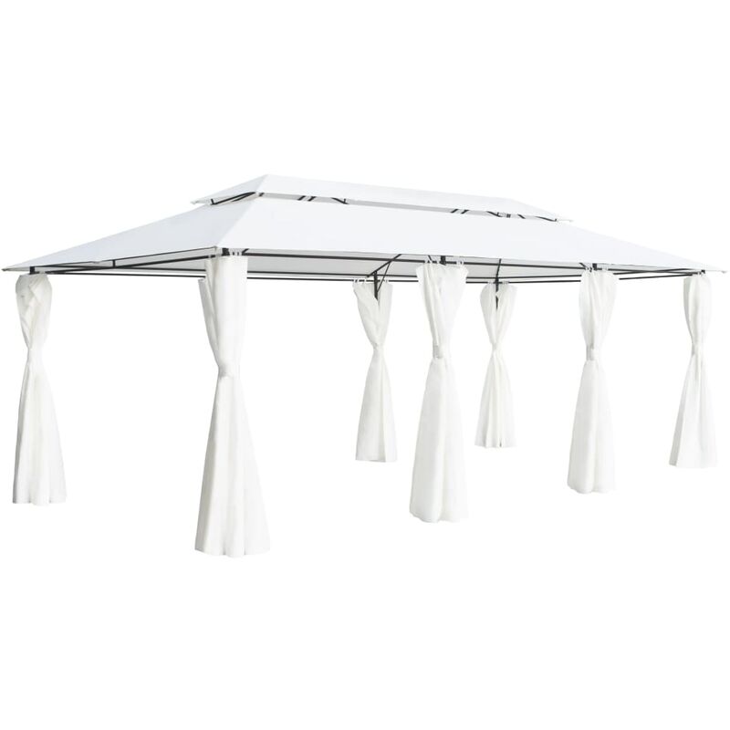 Gazebo con Tende 600x298x270 cm Bianco VD26523 - Hommoo