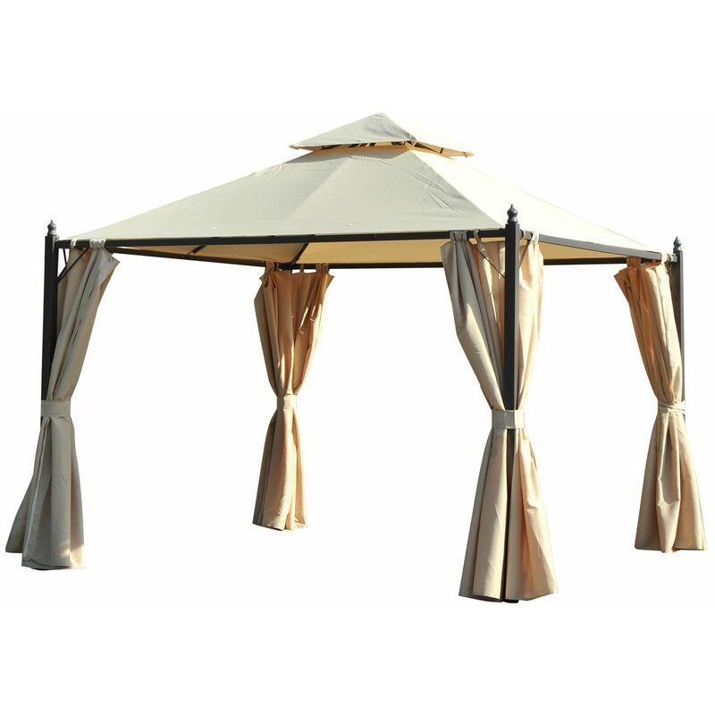 Gazebo da Giardino Impermeabile 3 x 3m con 4 Pannelli Laterali Beige - Outsunny