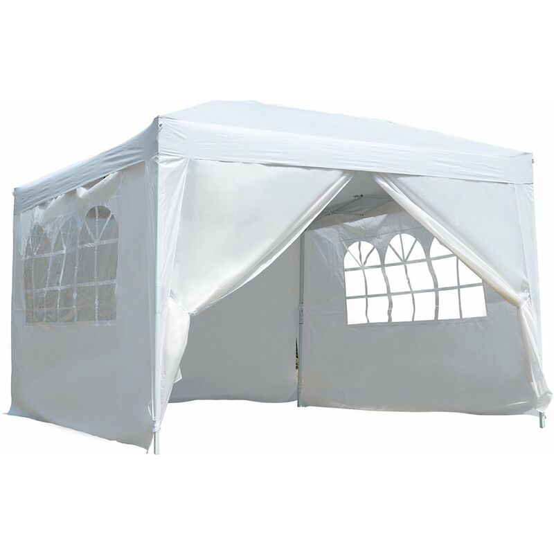 Gazebo Impermeabile con Pannelli Laterali in Tessuto Oxford Bianco, 3x3m - Outsunny