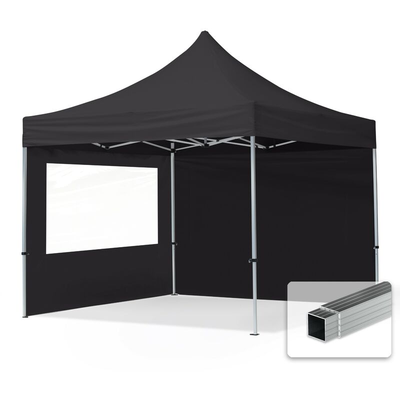 Gazebo Pieghevole Giardino 3x3m - 2 laterali Alluminio Telo PES300 100% Impermeabile Padiglione Mercati Sagre nero - TENDAPRO.IT