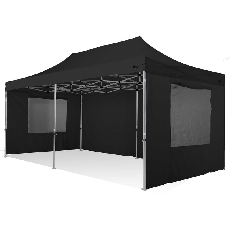 Gazebo rapido 3x6 in alluminio rinforzato con finestre laterali PVC 350g metro. GAZEBO PIEGHEVOLE - NERO - RAY BOT