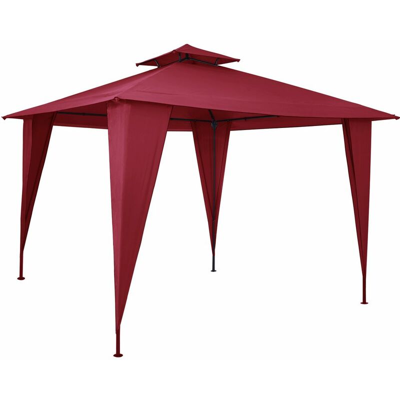 Gazebo tendone da festa 3,5x3,5m quadrato giardino con tetto e sovratetto Rosso - DEUBA